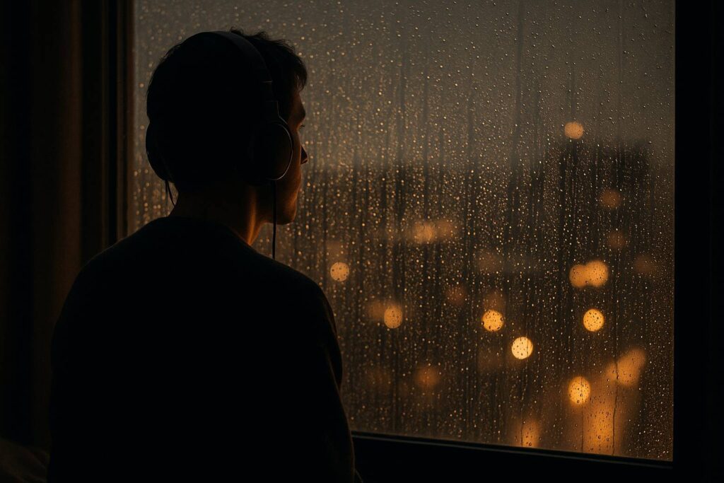 Piano jazz yang direkam dengan sengaja terdengar jauh. Suara hujan bukan efek tambahan—ia adalah bagian dari melodi. Fujita menempatkan setiap tetes air seperti metronom alami, menciptakan ritme 85 BPM yang sempurna untuk membaca dokumen panjang. Highlight: di menit 1:42, ada suara petir samar yang justru membuat semuanya terasa lebih hidup.