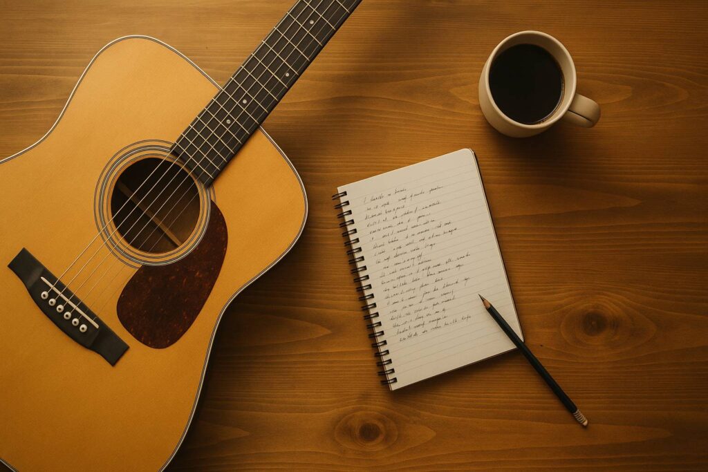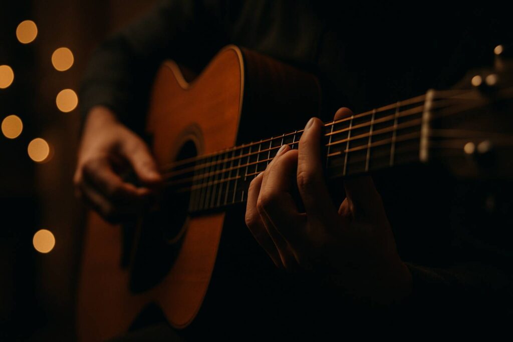 • Akustik Gitar: Jadi tulang punggung, dipetik dengan pola fingerpicking yang lembut. Suara senar yang tak terlalu “bersih” justru menambah kesan raw dan personal.